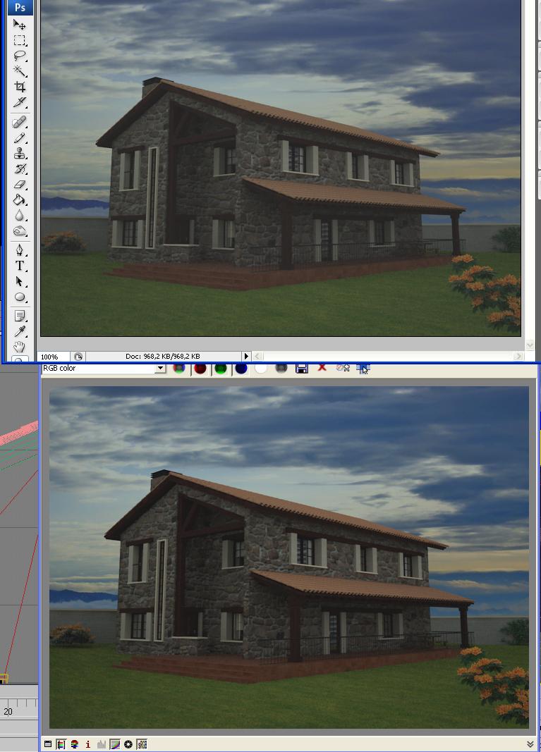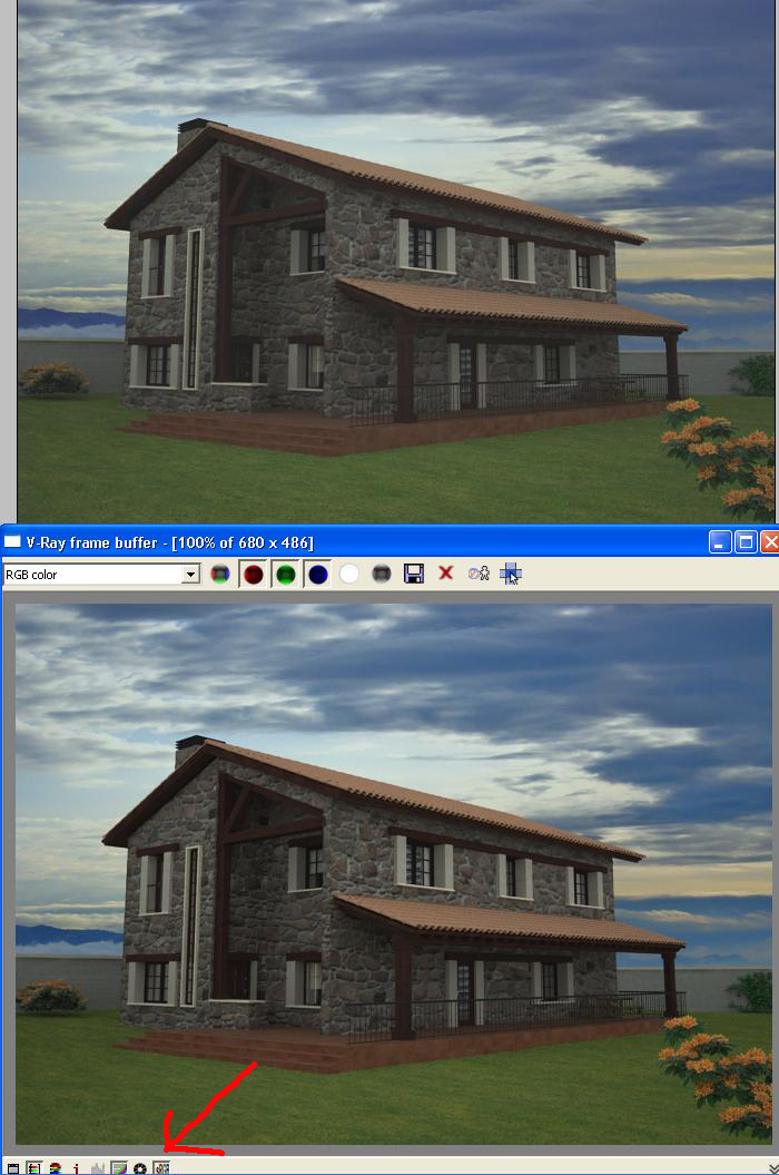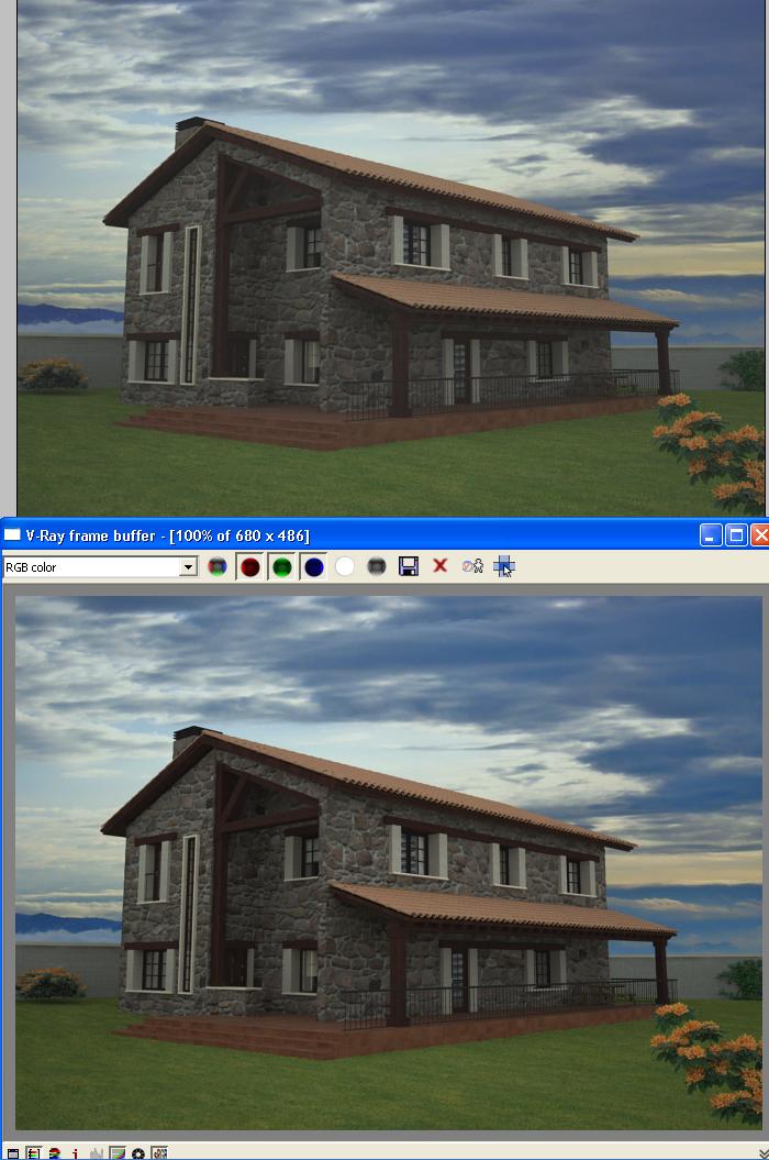 Eso, al guardar los renders los colores cambian, parece que se cubre la imagen de un tono gris. La diferencia se nota bastante, la imagen de arriba es la guardada y la de abajo sin guardar.