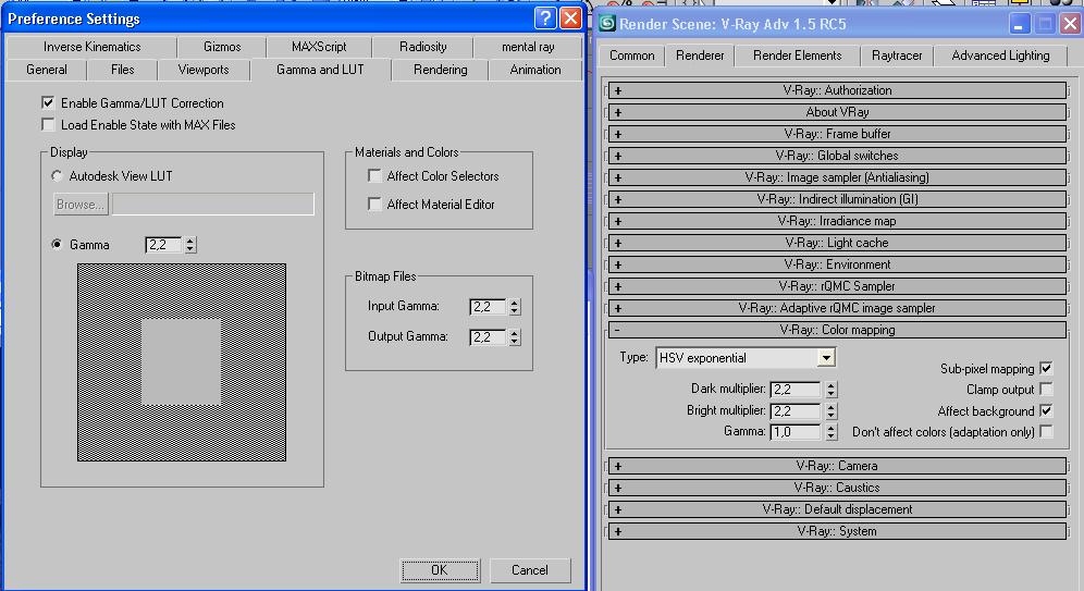 Por si acaso te recuerdo que con el output gamma del 3ds Max en 1, utilizando el V-Ray Frame Buffer debes poner el gamma del color mapping del Vray en 2,2, como te ha dicho Miguel y lo recuerda abrajeta.