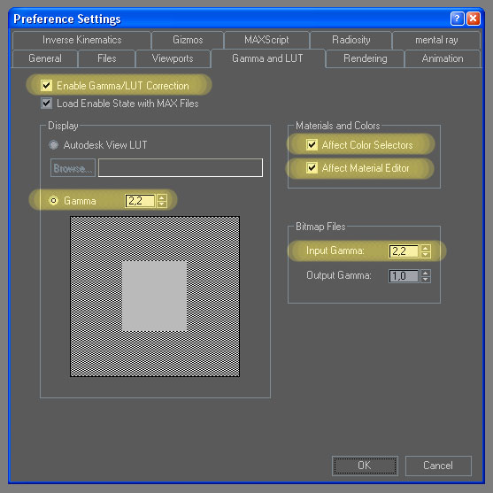 Como ya recomendé cuando hablamos de LightWave, no os compliquéis con los settings de gamma, sobre todo si no se entienden los conceptos, al trabajar en LightWave hay que cambiar el chip. Una imagen no se mejora tocando parámetros de gamma ni curvas, sino trabajando los materiales y ajustando bien las fuentes de luz, y el entorno.