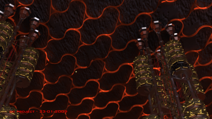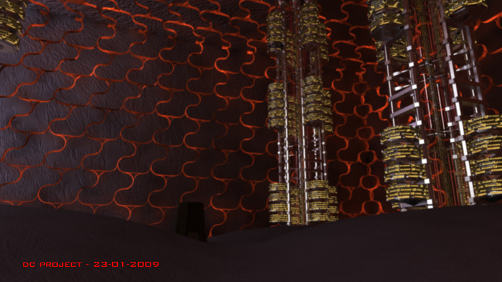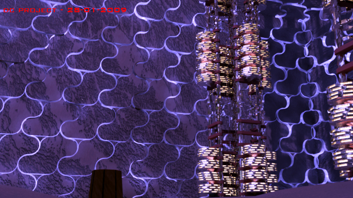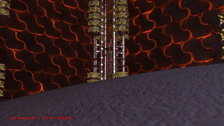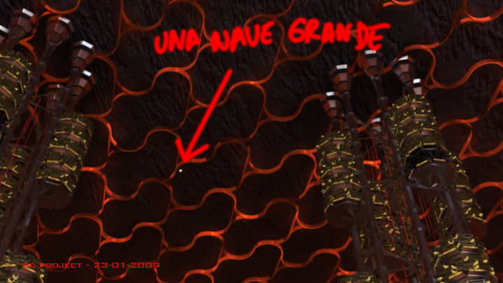No quiero criticar mucho, pero en mi opinión esa estructura que lleva el fondo no ayuda mucho, no sé cómo os las ingeniareis para que no destaque mucho, pero si una nave grande es así, con ese fondo y sin humos o nieblas o lo que sea me parece que confunde y resalta demasiado, aunque todo depende de los tiros de cámara, esperaremos a ver el resultado postproducido.