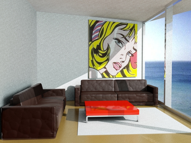 Lo de los sofás es cierto, utilice el Arch&design, con la textura de cuero. En cuanto a cosas que poner a la mesa, tengo que buscar una biblioteca de objetos 3d, porque lo que tengo es muy escaso. Muchas gracias por los consejos.
