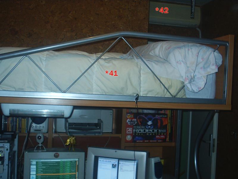 Dios, si eso no es un cuarto, allí pones unas cuantas latas de comida y es un refugio nuclear, con centro recreativo y puerto de comunicaciones, tienes hasta sofá. Yo en mí habitación con la cacho cama y el cacho escritorio ya me quedé sin espacio, pero me quedé con las ganas de quedarme con el sofá que había aquí antes, mi cuarto era antes la sala de estar, pero o lo metíamos de lado, o lo grapábamos al techo, porque no hay espacio (ya pondré alguna fotografía).