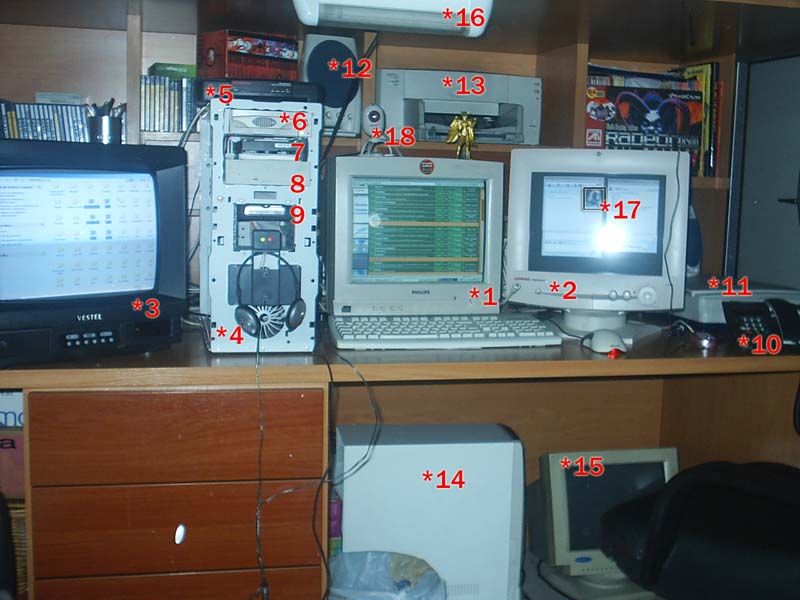 Imagino que todos esos CD de la estantería serán originales. Es que, si no te puede caer un paquete que no veas. Y encima, en el monitor, los foros de elotrolado. Tío, estás haciendo puntos para subirte al pódium de los más freaks del foro. Puedes decir eso de ¿atenea, dame fuerzas? Si David Ramírez viera ese caballero del zodiaco encima de tu monitor, sólo el patriarca sabe lo que podría pasar :s, saludos.