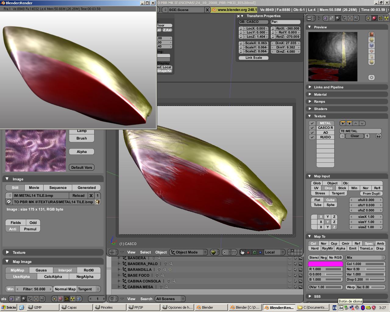 He quitado el Bump a la pintura y ahora sale bien, también he quitado el filter al metal. Ahora tengo otra duda, pero la pongo en el foro de texturizado.