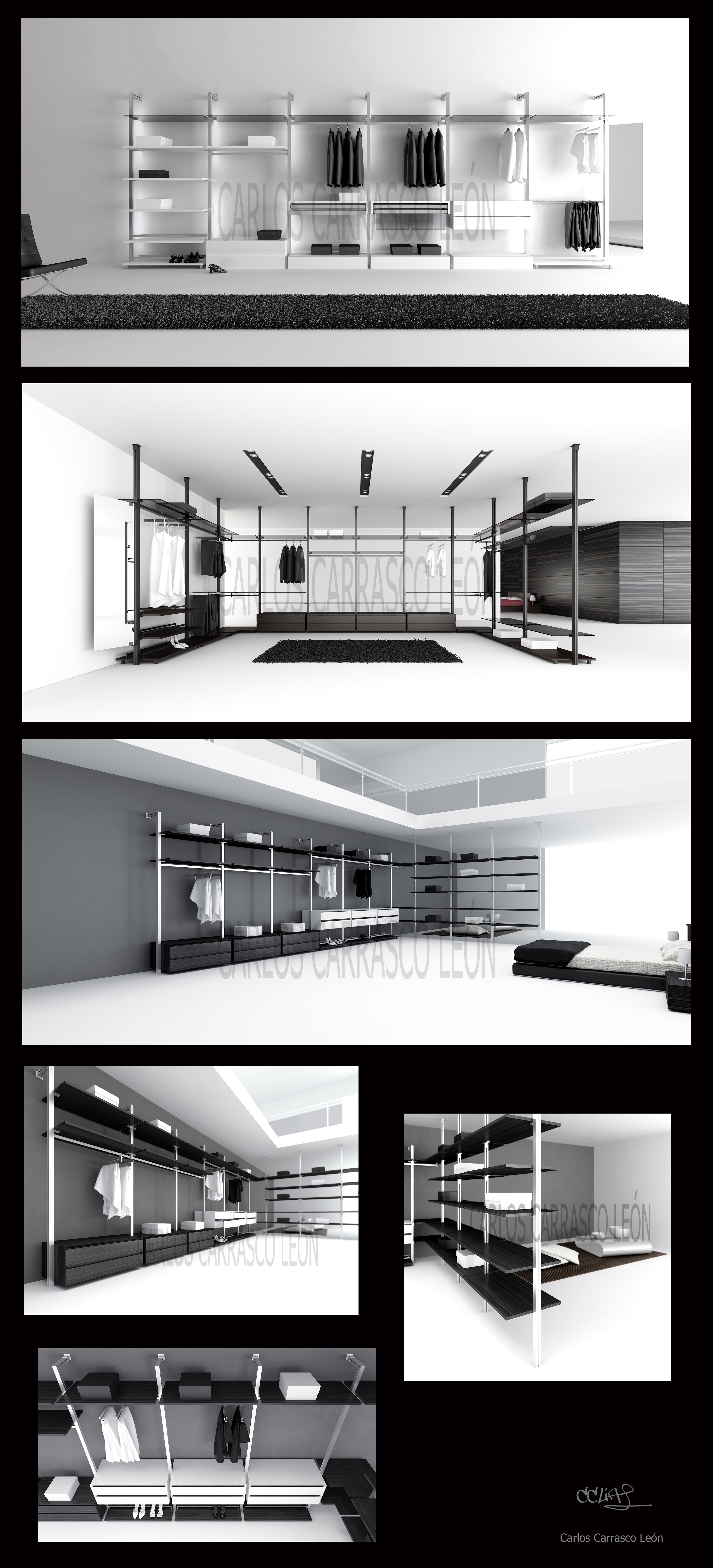 Hola, aquí muestro unas escenas configurando iluminación de interiores con unos vestidores, son escenas muy sencillas, mucho blanco, para que el vestidor sea el punto principal de la vista, espero que gusten. Un saludo.