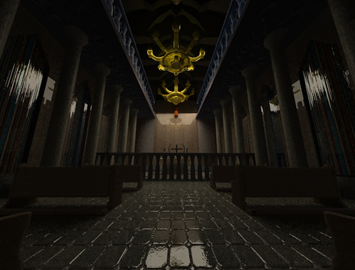 En esta animación, o sea la iglesia de la animación que publique primero en el foro, la mejore un poco con técnicas básicas de texturizado.