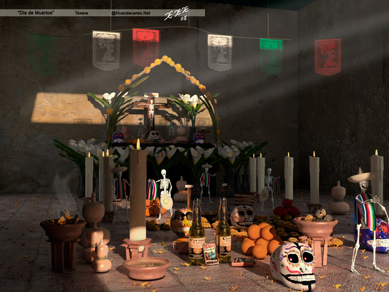 Hola Texere me gustó mucho tu render muy original dándole el estilo mexicano de noche de muertos, creo que debes de poner más flores de cempasúchil le darían esa exageración que tienen las ofrendas, solo un detalle las chelas están gigantes man sería una buena fiesta saludos.