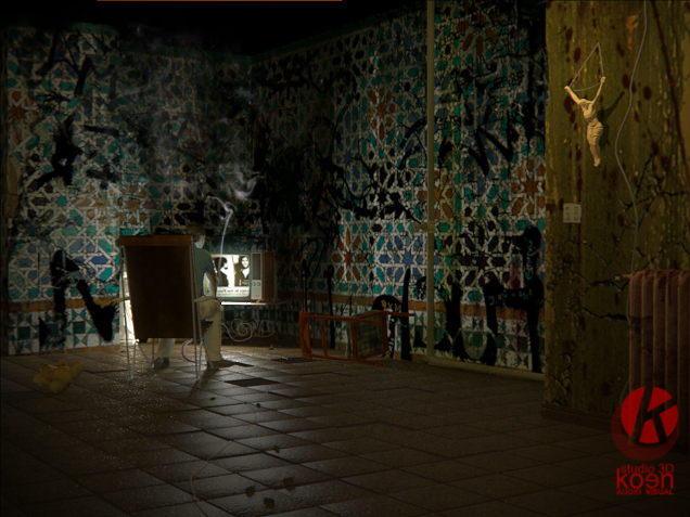 Carleptos >>> sí que puede que este algo sucio de más, la cosa es que quería que pareciera una vivienda en la cual los grafiteros habían pasado un buen rato, lo del cristo no lo entiendo mucho.