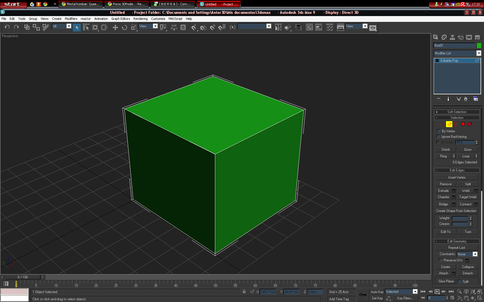 Imaginad que tengo un cubo convertido a editable por supuesto, lo que necesito es redondear una sola de sus aristas. O sea, una de las aristas que une dos caras del polígono. De forma que el canto en esa parte del cubo sea un canto redondeado, dejando las otras aristas como están.