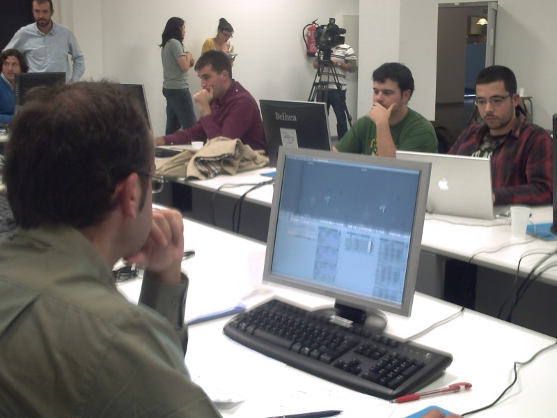 El curso ha estado muy bien, pero en vez de dar un curso de Game Engine, como estaba previsto, ha habido que empezar desde cero y enseñar lo básico del modelado, los objetos, materiales, animación y game logic. Todo en 5 tardes, así que, el curso ha sido casi un grupo de clases personalizadas de Blender porque cada uno tenía un nivel en 3d, o en 2d. Ha habido hasta casi conversos del 3ds Max, a todos los cuales les gustó el tema y prometieron meterse, por lo menos, en el tema de tiempo real.