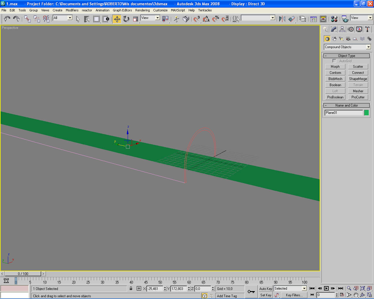 Luego con el grid activado a vértices, alineas el pivote del objeto forma, por ejemplo, una esquina de este, y lo dejas ahí, luego, alinea el objeto ya sin entrar en jerarquías, a la Spline recorrido, y forzaras el objeto a recorrer el solevado en ese punto, y en esa dirección.