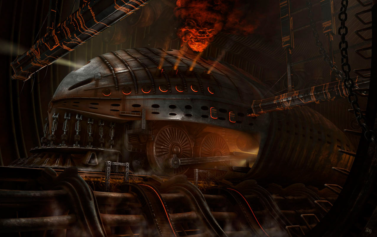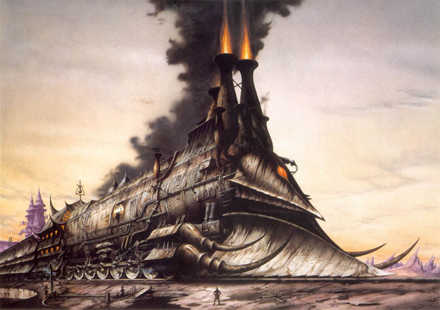 Hola, aquí os dejo mi último trabajo, un descomunal y terrorífico tren surgido de las mismísimas entrañas del infierno, un pequeño homenaje a giger, Lovecraft y Bilal.