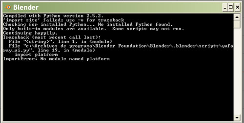 Feanor:yes, eso era. Caronte: me dejas intrigado con lo del script de Yafray, yo lo he bajado e instalado, no he hecho nada de scripts. De hecho, anoche desinstalé el Yafray porque no funcionaba (o tardaba mucho) y pensé que podía estar dando un conflicto con el Yafray por tener los dos instalados al mismo tiempo.