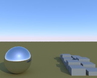If the wrong parameters are used for the the from información, the shadows Will not match the Sun position. The same scene as above was used, but the Sun position moved todo the front. The Chrome ball shows the Sun#s position somewhere in front and above, but the shadows are clearly casted by a light position behind the Camera.