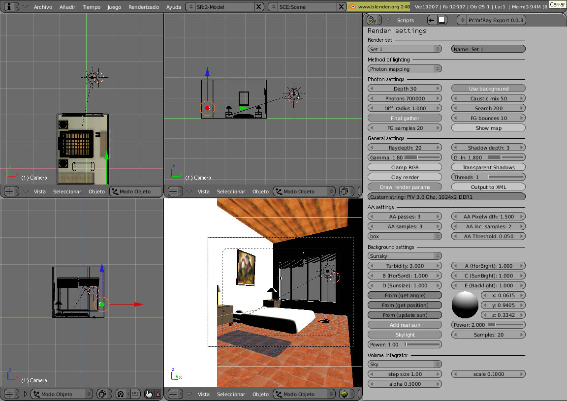 Cosas sobre el motor yafaray en Blender