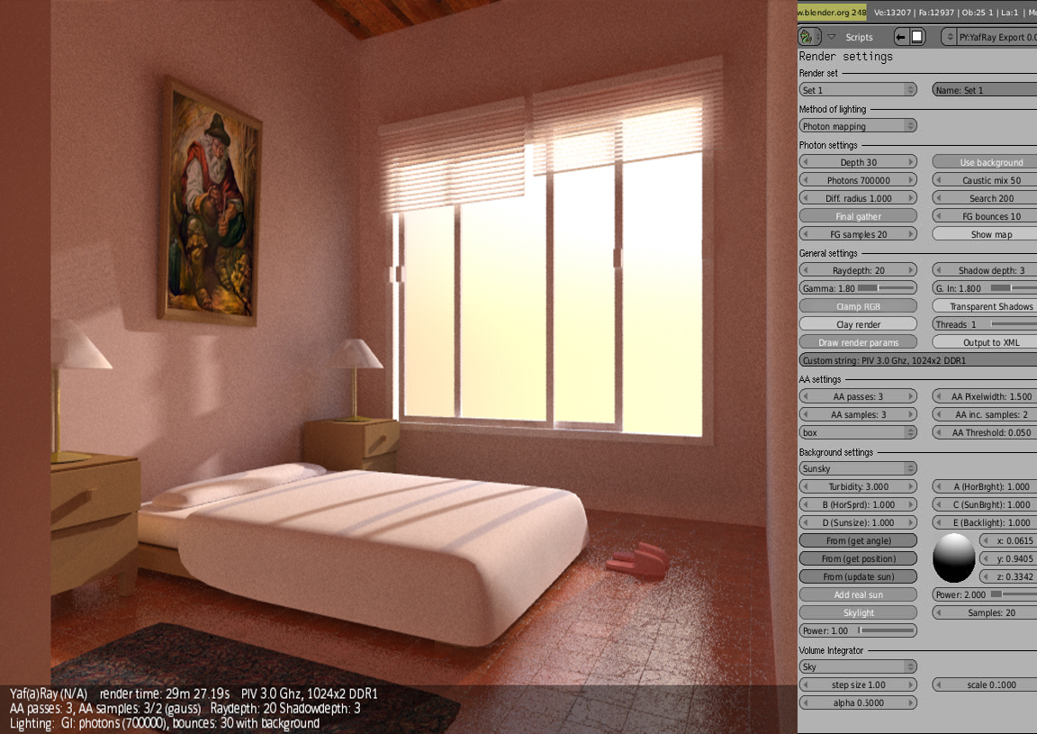 Vaya, ese Yafray da buenos resultados. ¿cuándo estará totalmente integrado al Blender?
