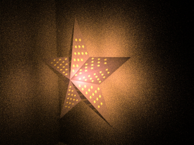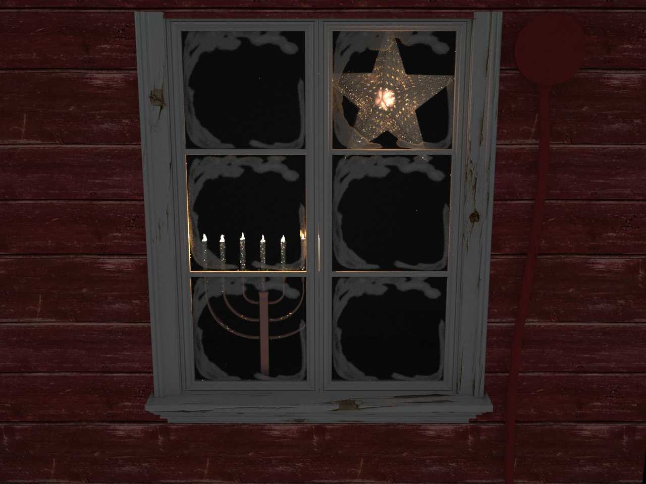 Estoy haciendo cada elemento por separado, de momento tengo echo el candelabro, la estrella de papel con una luz dentro, algún adorno más por decidir, y el marco de la ventana, todo lo más realista que pueda.