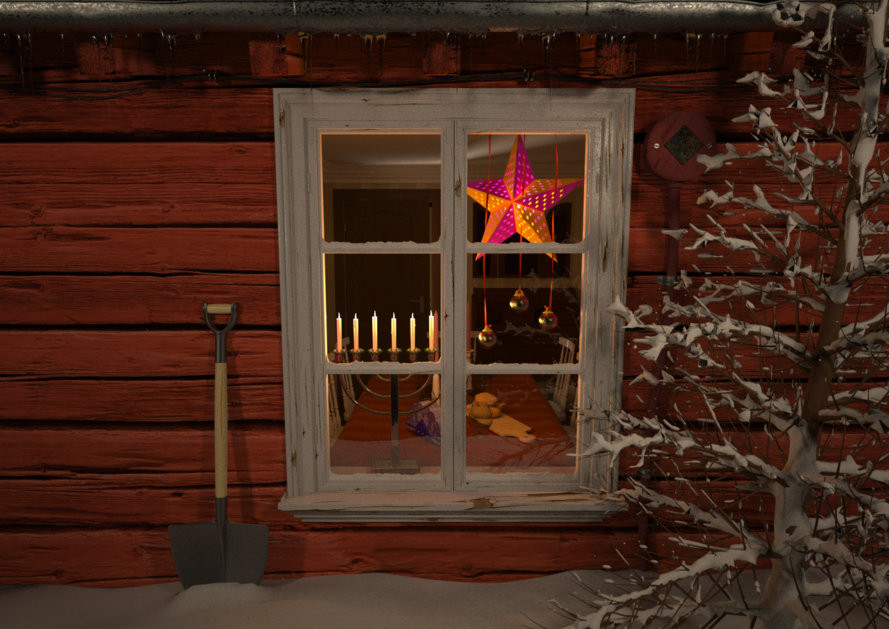 Mi propósito es hacer una Julfönster de una casa en el campo en pleno invierno e intentando captar el espíritu navideño y la sensación cálida de dentro de las casas en contraste con el duro invierno en el norte de Suecia.