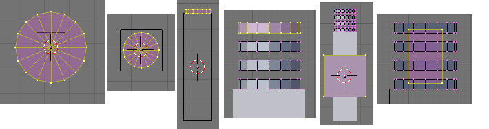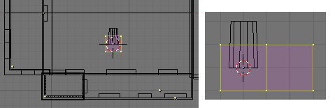 Ahora, en vista superior (7), selecciona todos los vértices del trozo de pared que queremos girar. Se puede hacer pulsando la tecla b y trazando un rectángulo que pille todos esos vértices, pero ninguno de otra de las paredes.