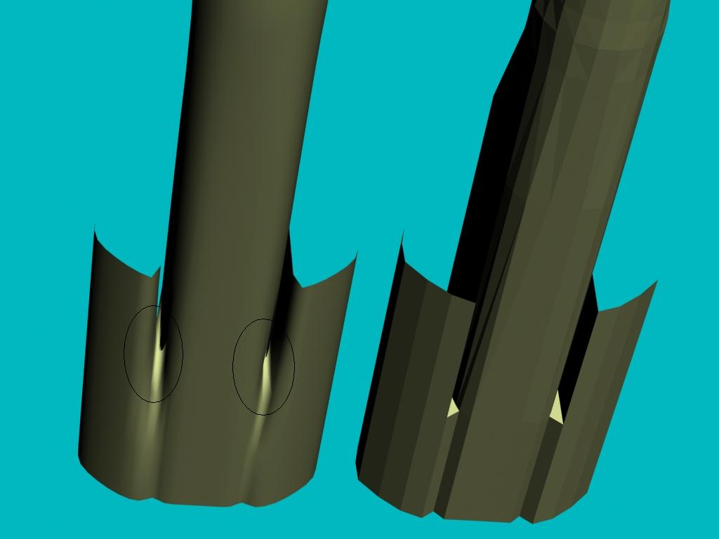 Estoy intentando modelar un Mirage 2000, que es un avión de combate, para el que no lo sepa, y sucede que este bicho tiene partes que son rectas y otras que son redondeadas, el problema es que, al aplicar TurboSmooth, me lo redondea todo salvo las caras que elimino, os pongo una imagen, a la derecha la figura con TurboSmooth y con círculos las caras que quiero que salgan planas y no me deja, a la derecha el objeto si el modificador, que hago? Gracias.