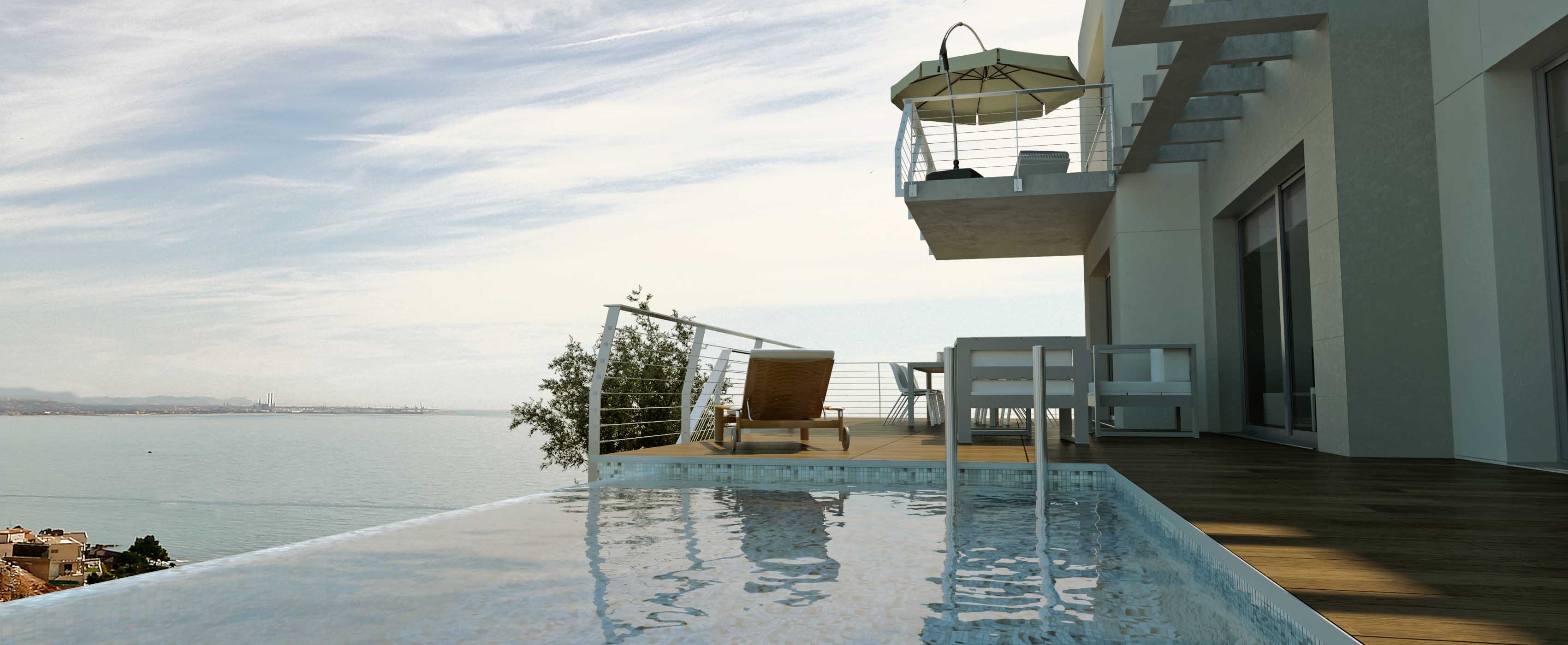 La decoración y gran parte del modelado es de Belén Alférez, el resto lo hice con 3ds Max, Vray After Effects y Adobe Photoshop. La enredadera está hecha con el Ivy gen, el césped con Vray Fur y la mayoría de árboles y mobiliario son proxys.