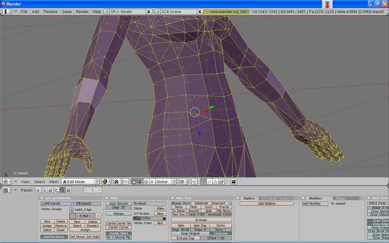 Me pasaron un modelo de una chica y me puse a arreglar un poco la Maya. Tuve que borrar una parte del brazo que está bastante mal y me puse a usar "Append Polygon" el botón. Vamos, para crear una nueva Maya en el brazo. Veo que aparece como un poco más claro, no le di importancia y voy a pasarlo a ZBrush. Ahí veo que la parte que arreglé con el "Append Polygon" no aparece.