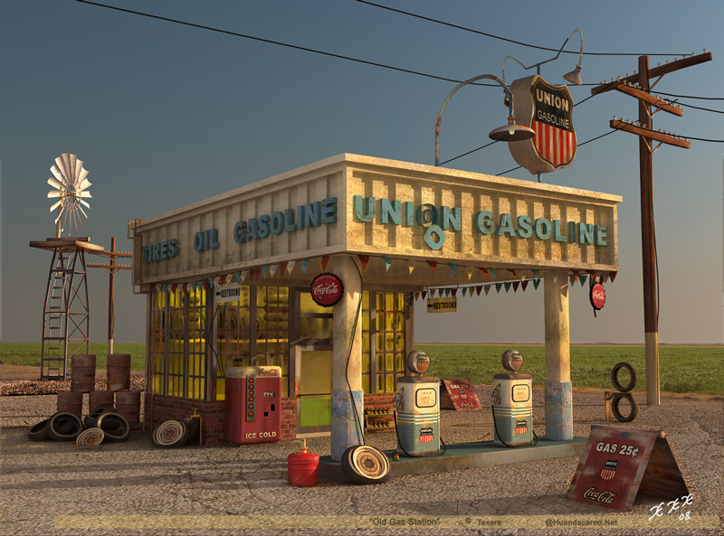 Así es, concuerdo el render está muy bien, pero hay claros problemas e escalas, como si hubieras apachurrado la imagen, la puerta, las bombas, el despachado de refrescos, hasta el letrero de gas $25 esta bajo, arréglalo y se verá de lujo, saludos.