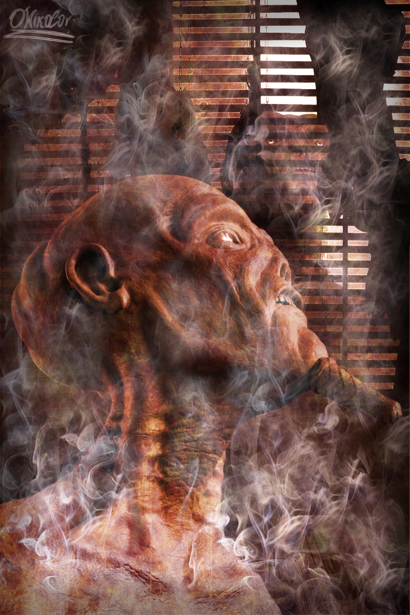 Gracias Javier por estas palabras. A mi palabras como estas me hacen seguir adelante. Si esto te sirve de ayuda no piensas que soy experto puesto que el Adobe Photoshop solo utilizaba hasta ahora solo para texturizar los UV maps de mis personajes. En realidad, esta es la primera composición que hago en mi vida (no está tan mal para ser la primera vez)y también me han sido de ayuda muchos de los trabajos que he visto por aquí. Y respeto a la pregunta de sui, el humo ha sido muy fácil de hacer. He buscado fotografías de humo por internet y he usado la herramienta de clonar en Adobe Photoshop sobre una capa limpia y lo he modificado un poco.