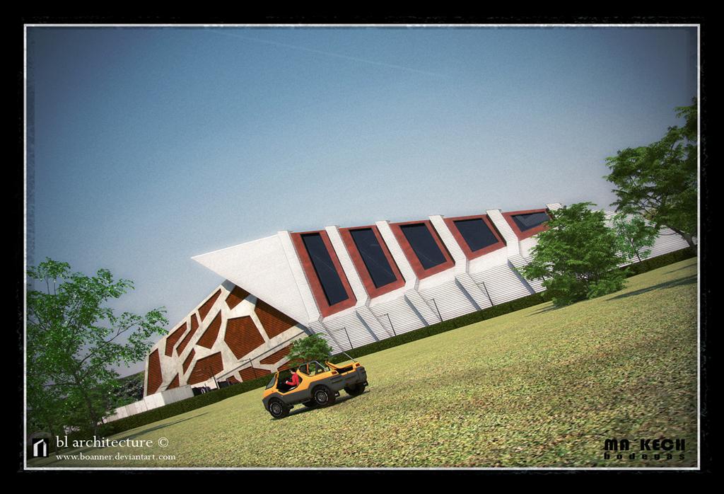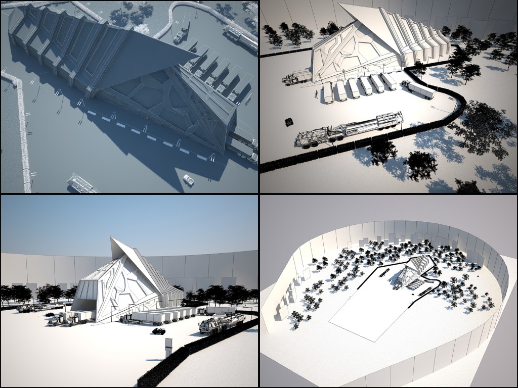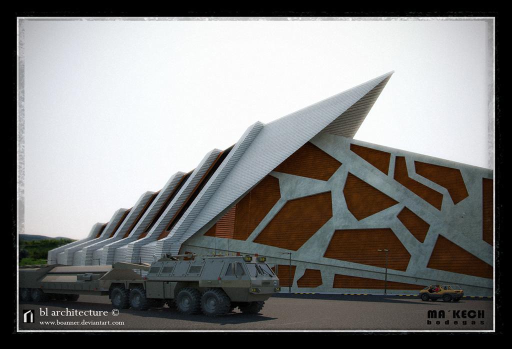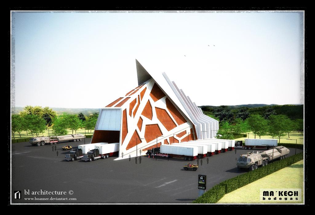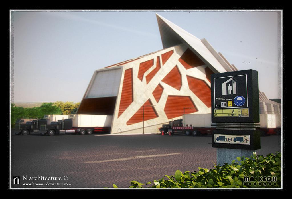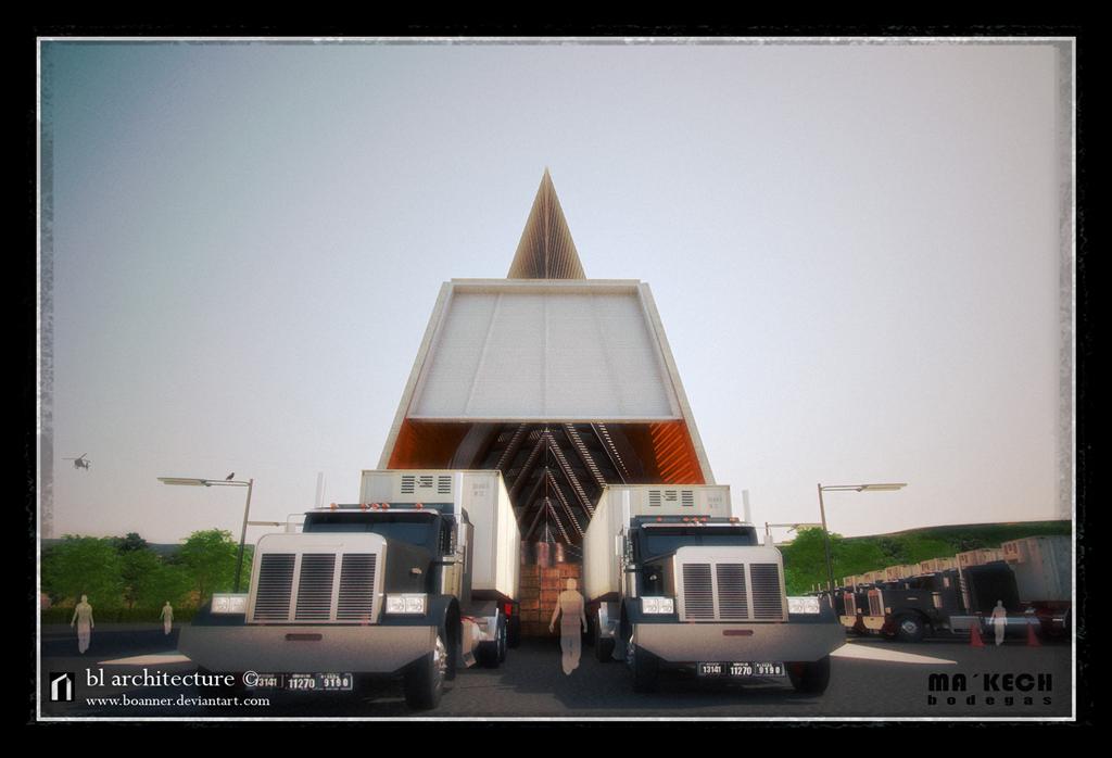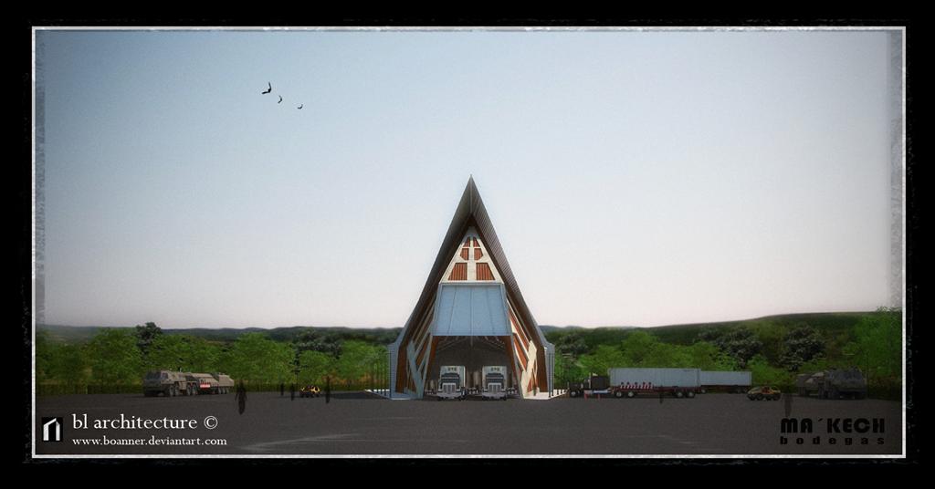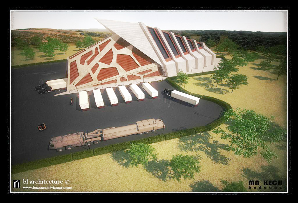 La idea en general, fue de diseñar una especie de caparazón o coraza como protector del mismo, la cual transmita esa sensación de resguardo para con las cosas que ahí se depositen, de ahí su nombre makech el cual significa escarabajo en idioma Autodesk Maya, además dentro de la idea se incluyo la utilidad que se les puede dar a los vehículos militares dentro de este mundo industrial. Como estructura principal: el acero ya que a pesar de la gran cantidad de energía que este necesita, es un material 100% reciclable en todos sus aspectos, la volumétrica de ingreso se encuentra cubierta por una grilla de concreto y por dentro acero corten, por las mismas razones anteriores.