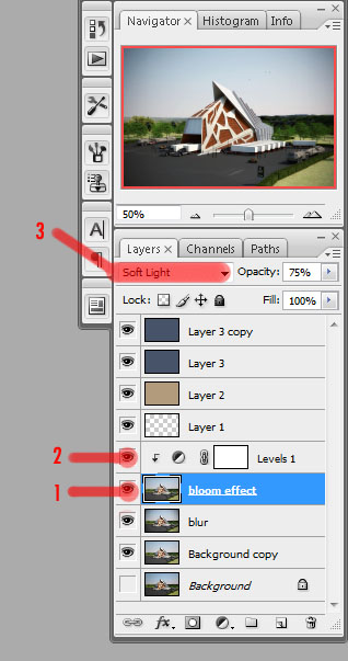 Tercero (3) aplico esta capa sobre la de abajo como Soft Light en algunas use screen.