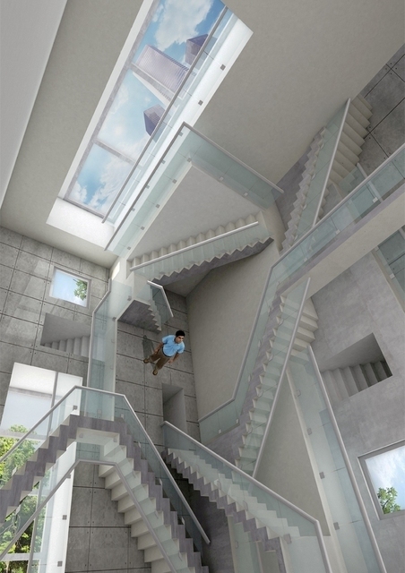 Me refiero al concepto de la imagen, el porqué de ella, que quiere decir o que intenta transmitir con ese juego de escaleras en todos los sentidos.