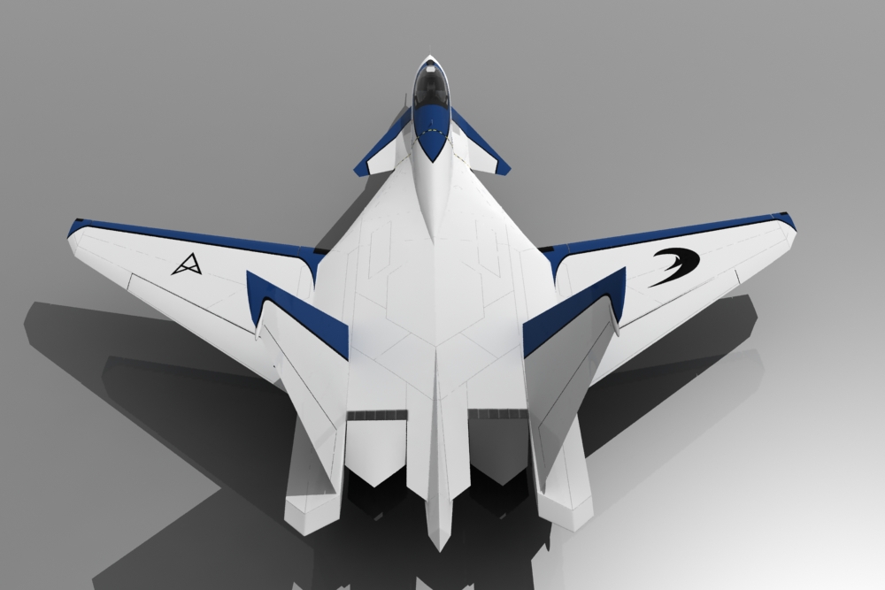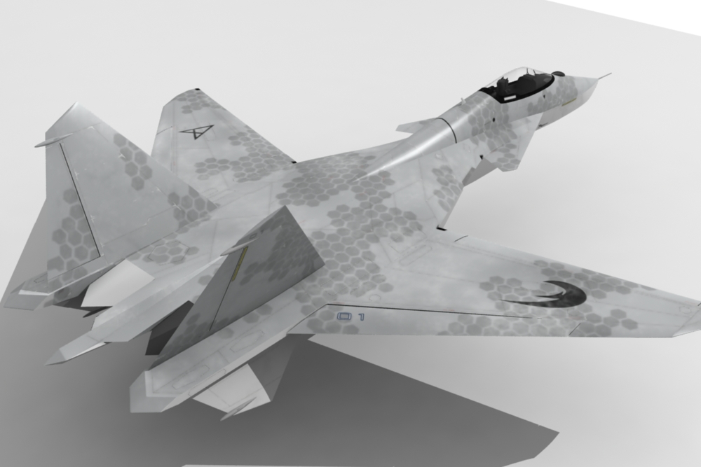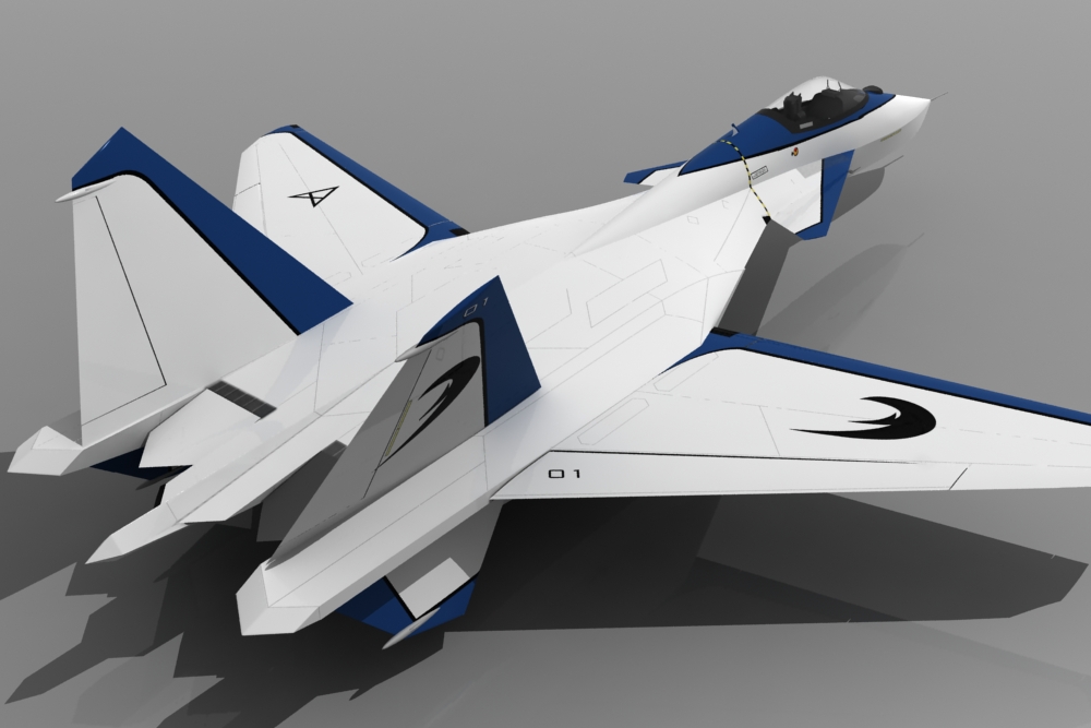 Es casi un Suhkoi su47, concepto avanzado por el Grumman x29 en el 84 y ya antes por Heinkel en los años 40, con toques de algún que otro caza moderno, como el f22 con sus toberas vectoriales, algunos detalles de Eurofighter Typhoon, e incluso los colores de los cazas experimentales de la nasa de la misma época del x29. Saludos.
