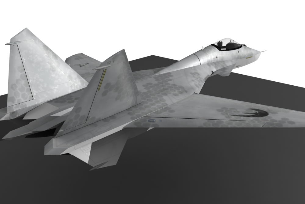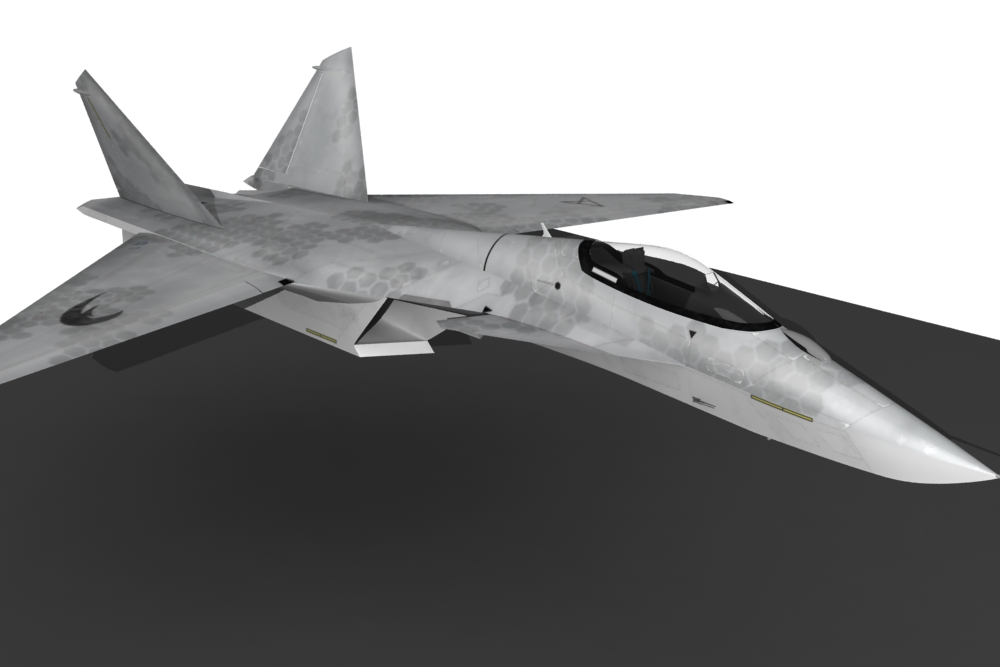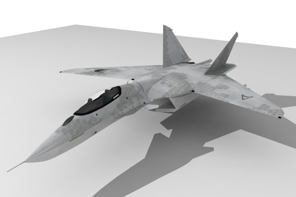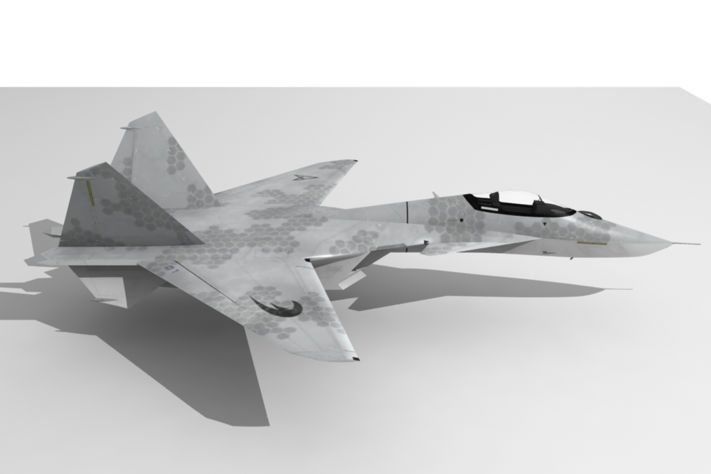 Así es, la inspiración la tome del su-47 (aunque en verdad el Bérkut solo fue un prototipo que se llamo s-37 Golden Eagle), también las vectoriales y cabina del f-22 y del Eurofighter, bueno cuando lo estaba diseñando hace algunos años, aún no lo conocía así que, en principio no tome nada de este, creo, los colores del x-29.si, por que mostrarlo con la textura de guerra, como que no esta ni lista aún, y esta fue muy fácil de hacer.