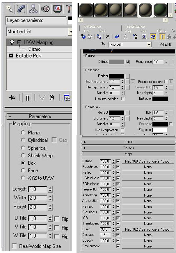 Kiko: en cuanto al muro, aquí va la nueva imagen con el muro en de hormigón en gris, ya que el marrón no me convence mucho, para la textura del muro la he tocado en Adobe Photoshop y la he hecho 4 veces más grande con distintas escalas y posiciones, pero se me sigue repitiendo, y no sé cómo arreglarlo, aquí dejo los parámetros que he utilizado, a ver cómo puedo hacer para evitar la repetición.