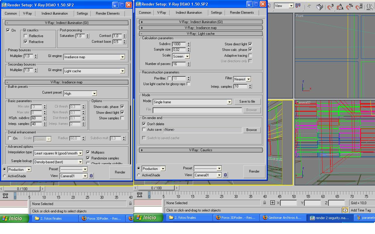 Esta realizado con 3ds Max 2009, Vray, rebotes primarios Irradiance Maps, secundarios: Light Caché a 1000 subdivisiones y 12 pases, GI high, t.