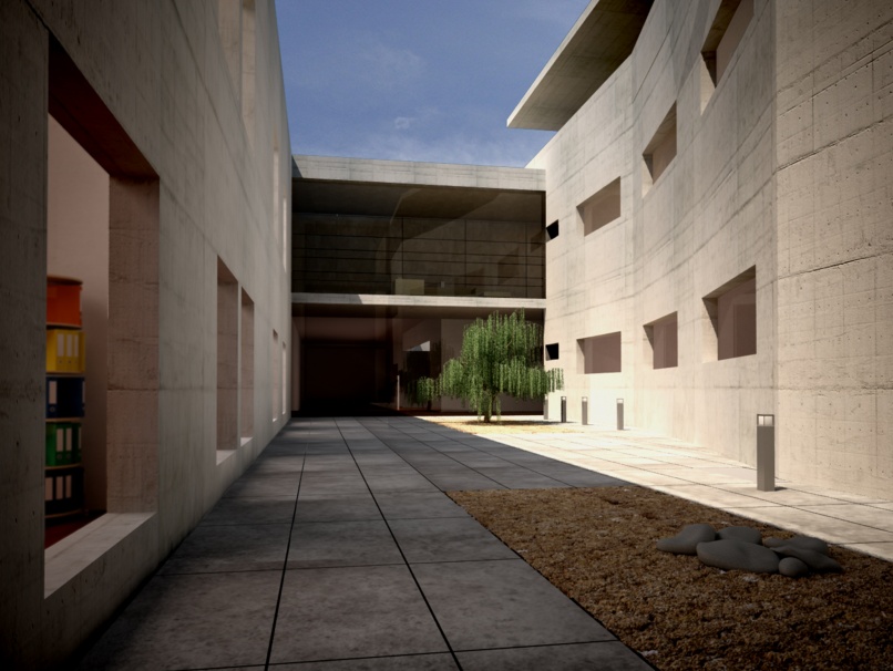 Bueno, aquí os mando el nuevo render con el nuevo material del muro, creo que ha ganado en realismo, otra cosa es la preferencia de cada uno en el color, que el otro era con tono marrón y este hormigón de tonos grises. Me a ayudado mucho esta nueva textura, gracias de nuevo por el enlace Kiko.