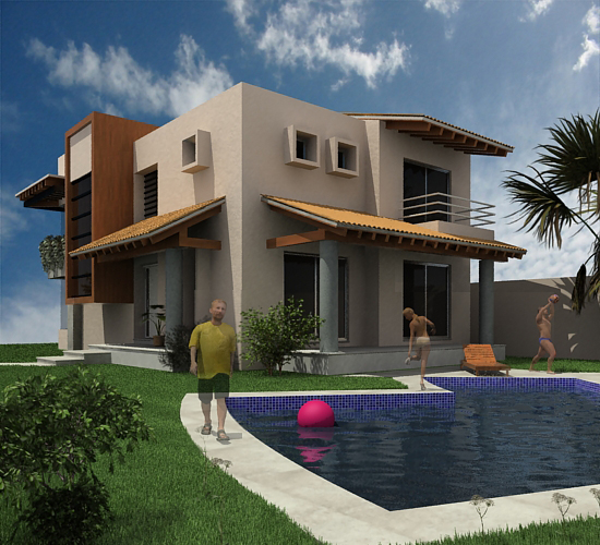 Hola envío fachada actualizada. Bueno como pueden apreciar en el renders trato de trabajar el agua de una manera aceptable, así como la text, de pasto y las escalas humanas, esta técnica me gusta.