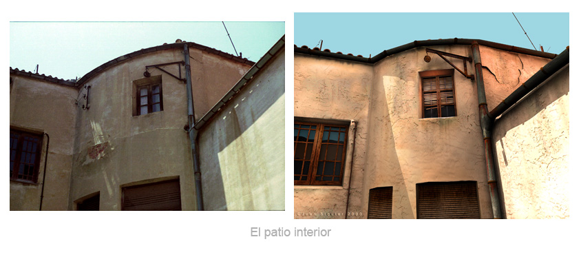 Se me ha ocurrido publicar algunas de mis ilustraciones junto a las fotografías que me sirvieron de referencia, algunas de esas fotografías me gustaban tanto que traté de clavarlas mientras que la mayoría de las veces las interpretaba con libertad quitando los estorbos y modificando lo feo. En algunos casos ni siquiera tenía la fotografía delante y tuve que trabajar de memoria (gracias) y en otros casos la interpretación me salió sin querer por limitaciones técnicas (el patio interior), me consta que tengo más, pero todavía no las he encontrado, cuando salgan de dónde estén escondidas las añadiré.