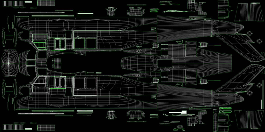 En este caso la textura del helicóptero es todo el exterior un 4096 por 2048 y según qué sitios me he quedado corto de detalle, posiblemente sería mejor haberlo hecho en 2 texturas para el exterior no se en fin, esto fue así.