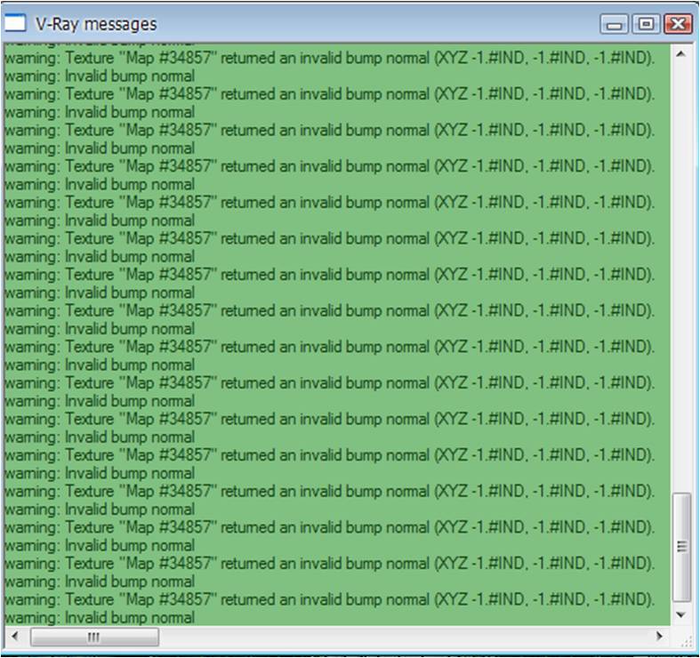 En realidad, es un mensaje de advertencia de Vray, no quiere decir que el fallo sea critico, solo te advierte de que está fallando el cálculo del Bump map, si el render te sale correcto no me preocuparía.