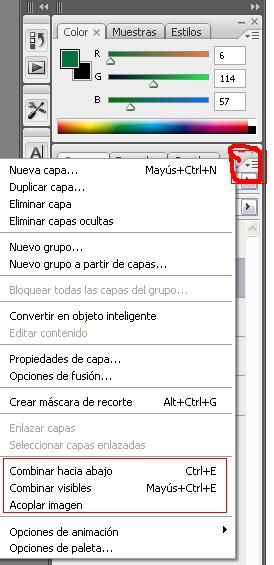 O sino tienes la opción de unir las capas con un blend de diferentes tipos que lo que hace es digámoslo así.combinar la capa a la que le aplicas el blend con la que tiene más abajo según el efecto deseado (mira la segunda imagen).