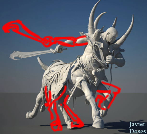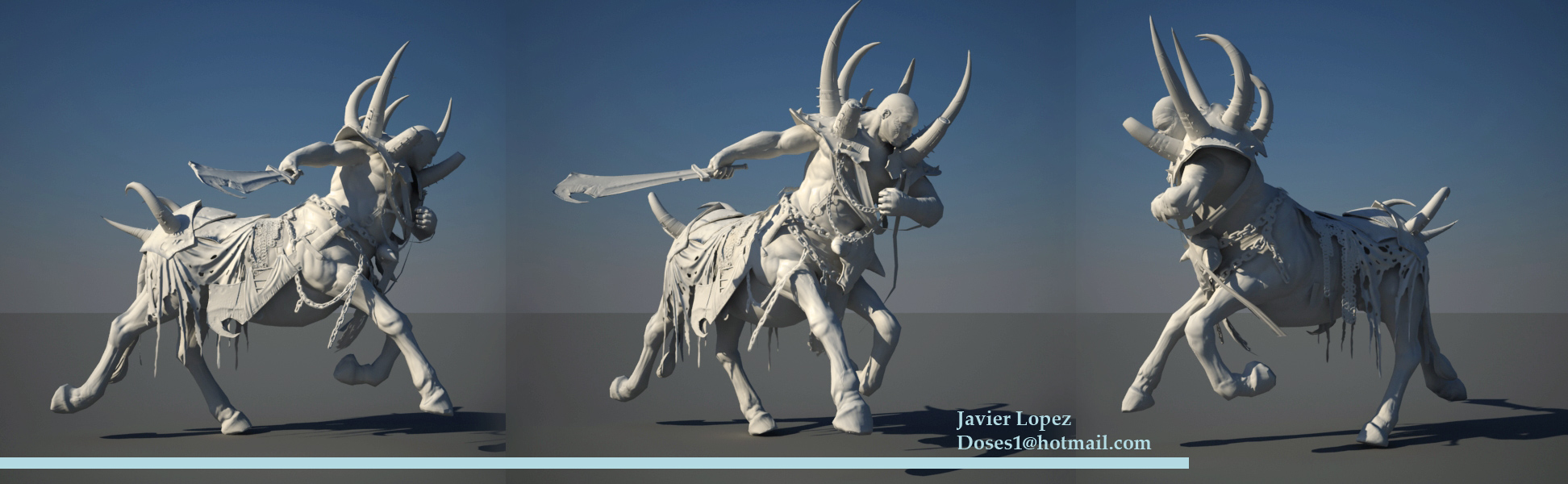 Hola chicos, hacia ya unos meses que no publicaba, ahí va lo último que estoy haciendo, como podéis ver es un centauro, estoy intentando darle toda la fluidez en los músculos que puedo, que era en lo que fallaba en anteriores modelos, no hacerlo tan cómic como los anteriores, evitando una musculatura perfecta.