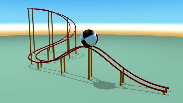 Si no quieres editar las curvas de animación será mejor Reactor, pero también podría hacerse utilizando el mismo Path para modelar los rieles y para animar la bola, editando después las curvas de animación en el Track View.