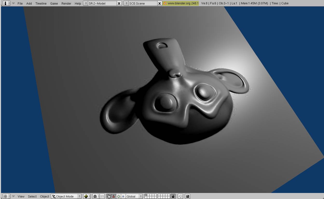 También probé con el GLSL, y la cosa va a peor, con el GLSL no veo ni colores, se ve el fondo gris y el cubo de color blanco (estilo Shadeless).