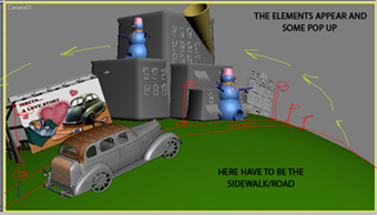 Hola en el archivo podéis ver la idea, quiero crear una acera y carretera para poder mover la esfera desde el helper junto con los elementos como hijos y que estos vayan apareciendo haciendo ver que el coche se mueve en la vista cámara.