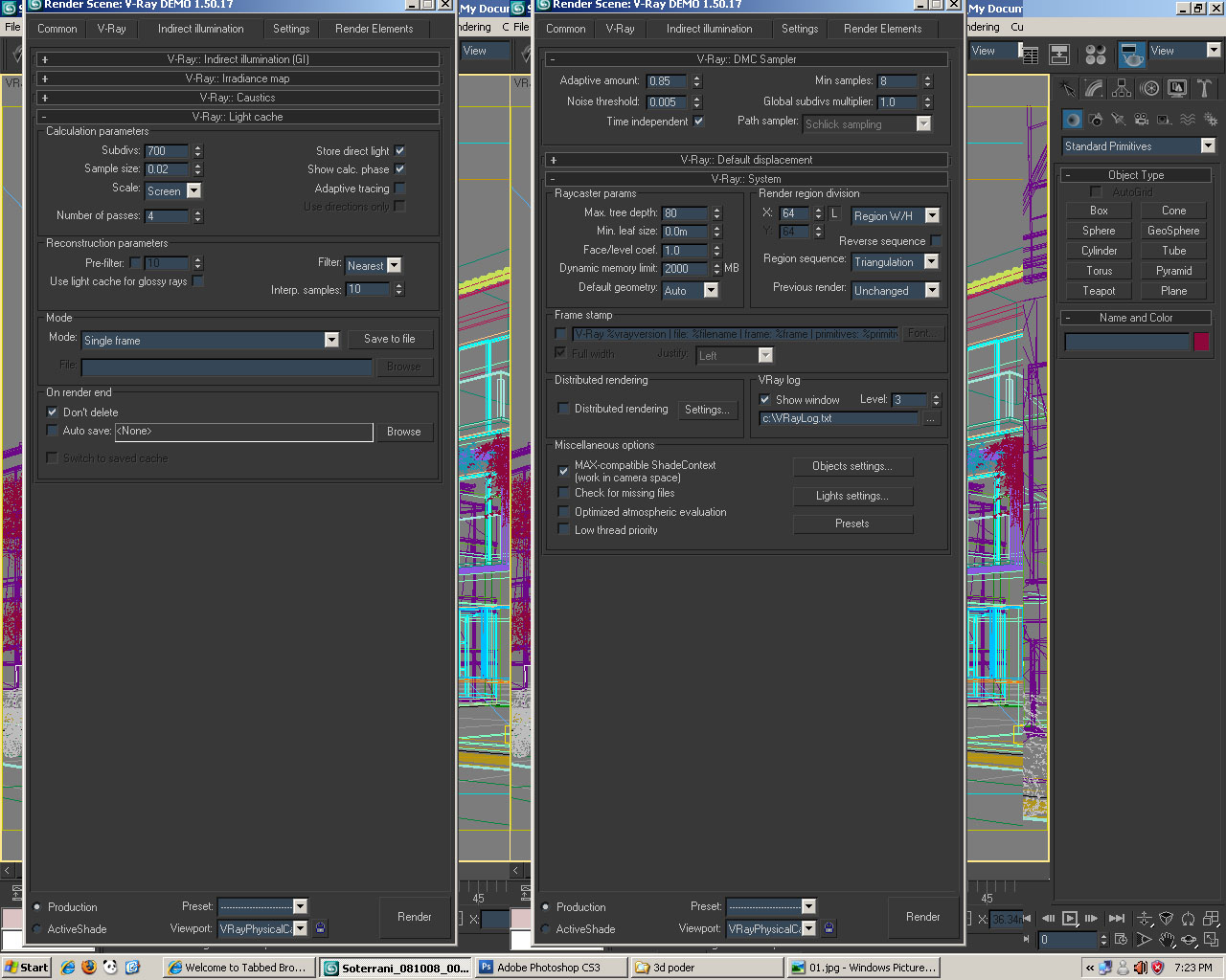Bonita imagen, pero coincido con Duvas en lo referente al sol, personalmente me gusta que el sol llegue casi a quemar la imagen. Por cierto. ¿Qué parámetros has utilizado en el antialiasing? Si no te importa claro.