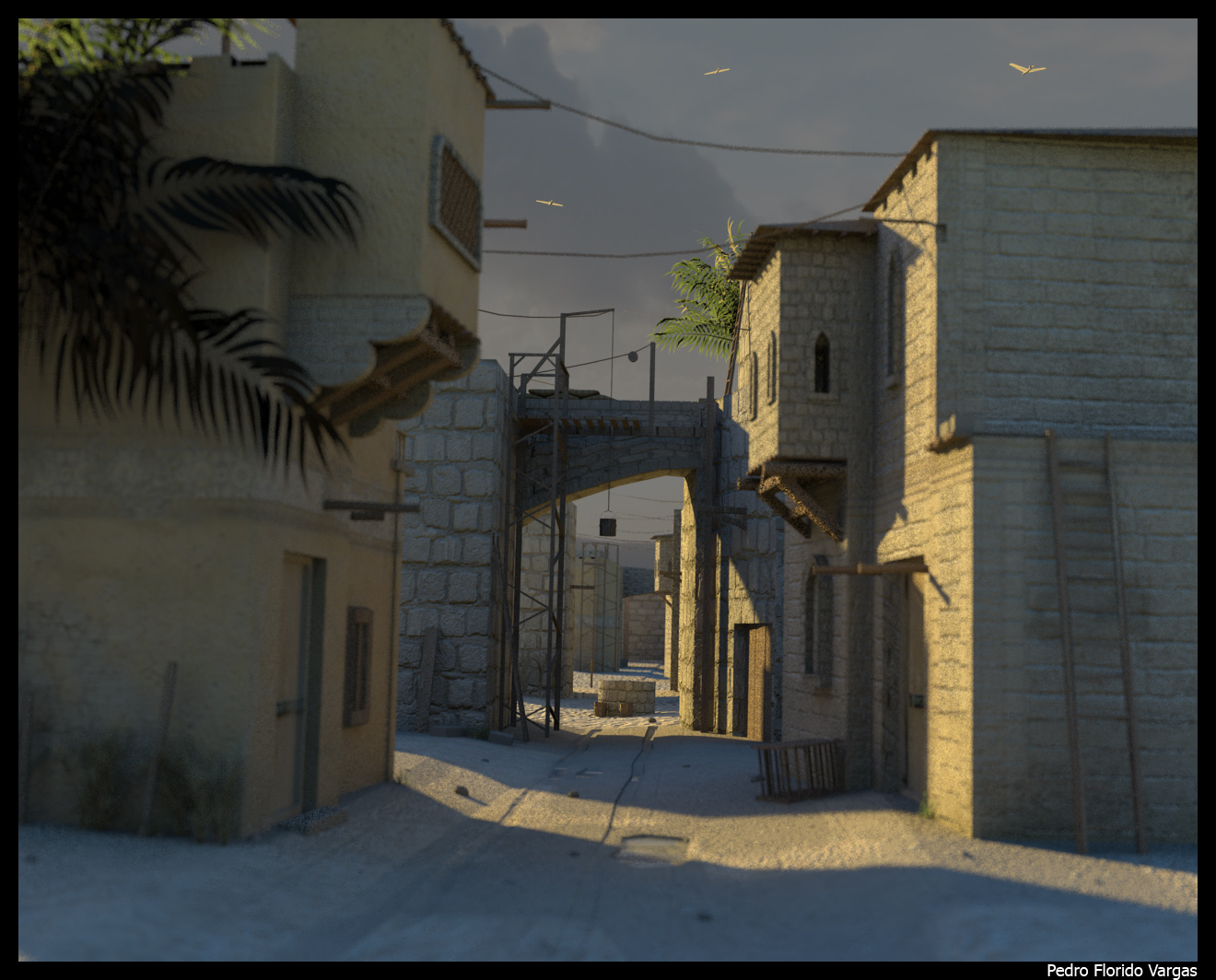 Hola a todos. Este es un trabajo personal donde he ido aplicando las cosas que poco a poco he ido aprendiendo, he utilizado el Maya 3d y el Mental Ray, mi primera intención era hacer algo ambientado en una ciudad del Sahara, aunque al final creo que no se parece mucho, he cometido algunos errores, pero para el próximo intentaré no cometerlos.