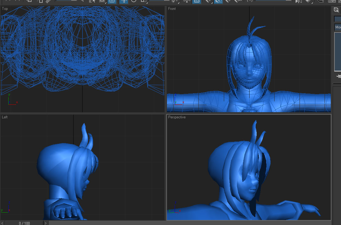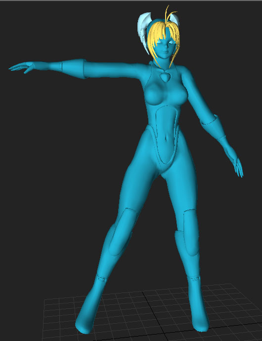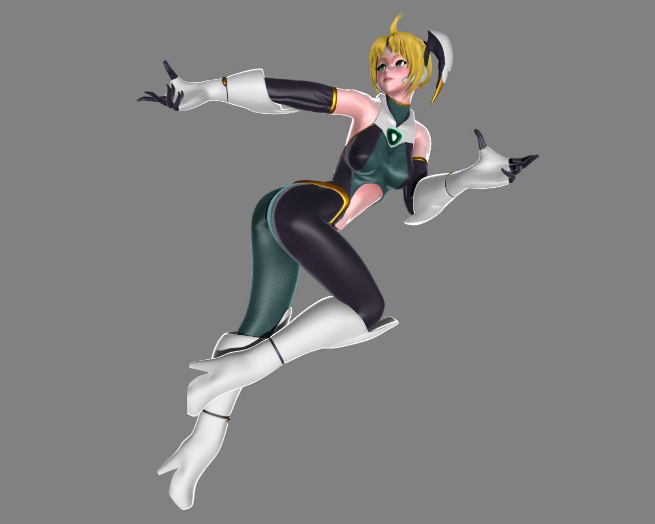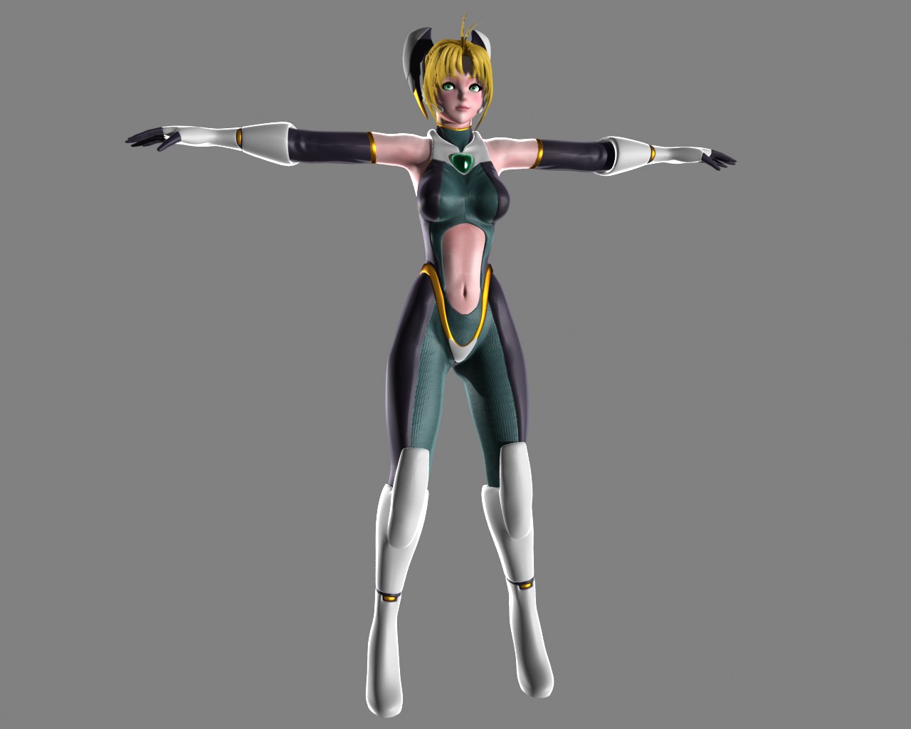 He quitado cosas que no me acababan de gustar (las coletas largas, las cosas de los muslos y el objeto de debajo del pecho), le he hecho el rig, he añadido texturas, un normal mapping y estoy haciendo el material. Faltan los zapatos y completar detalles en la cabeza (texturas texturas y más texturas) que pena, el concurso de la chica 3d ya pasó, de todas formas, imagino que habrá ganado un modelo mucho mejor que este.