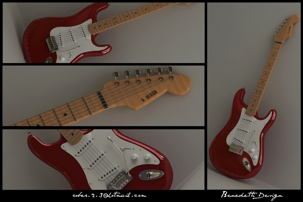 Hola, bienvenido al foro. La guitarra la veo muy bien. Buen modelado, lo único que veo un poco raro son las cuerdas, parece que no tienen diferencia de grosor entre ellas. Por lo demás muy bien. Un saludo.