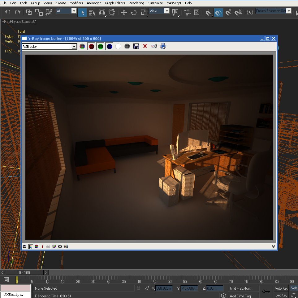 Jack, excelente trabajo de modelado incluso yo los modelados los hago con AutoCAD, y quisiera aprender a hacerlos con max, y me duelen los ojos de mirar tutorial, pero nada buscaré libros también, lo de lo la iluminación si quieres lograr el efecto de atardecer esta por buen camino solo le subes un poco más la iluminación de la Vray, y en pues lo cuadras, pero si no es así, como dice Kamborio tienes que, alejar más el Vray Sun y subirlo más la Vray Light ponla fuera de la ventana bien pegada a ella, pero fuera y le subes el nivel y si quieres detrás de la cámara pon otra para que ilumines un poco.